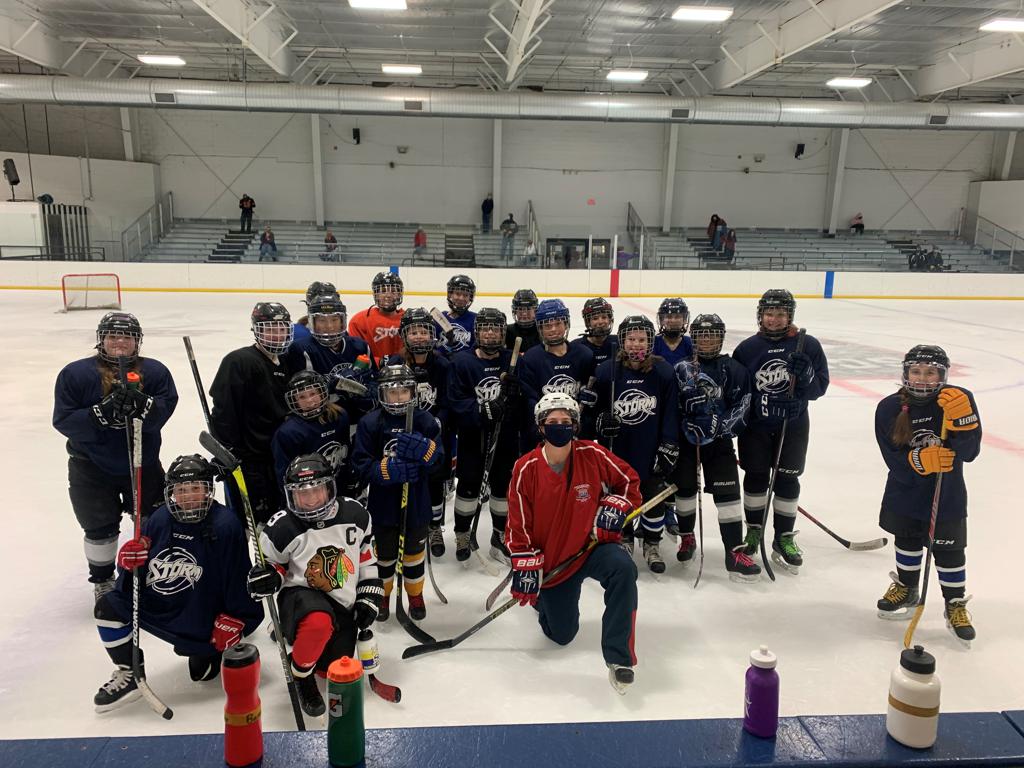 On December 26th and 27th the KC area girls players got a special visitor at their holiday practice event. Meghan Fardelmann, a Kansas native female hockey player participated in the girls holiday practice at KC Ice Center in Shawnee, KS. Meghan is a former Boston College Eagle (2005-2008) and NWHL Riverter (2015-2016) NWHL (National Womens Hockey League). Meghan helped with practice, answered questions and shared her hockey story with the girls. The event was sponsored by KC Stars Hockey and KC Ice Center.