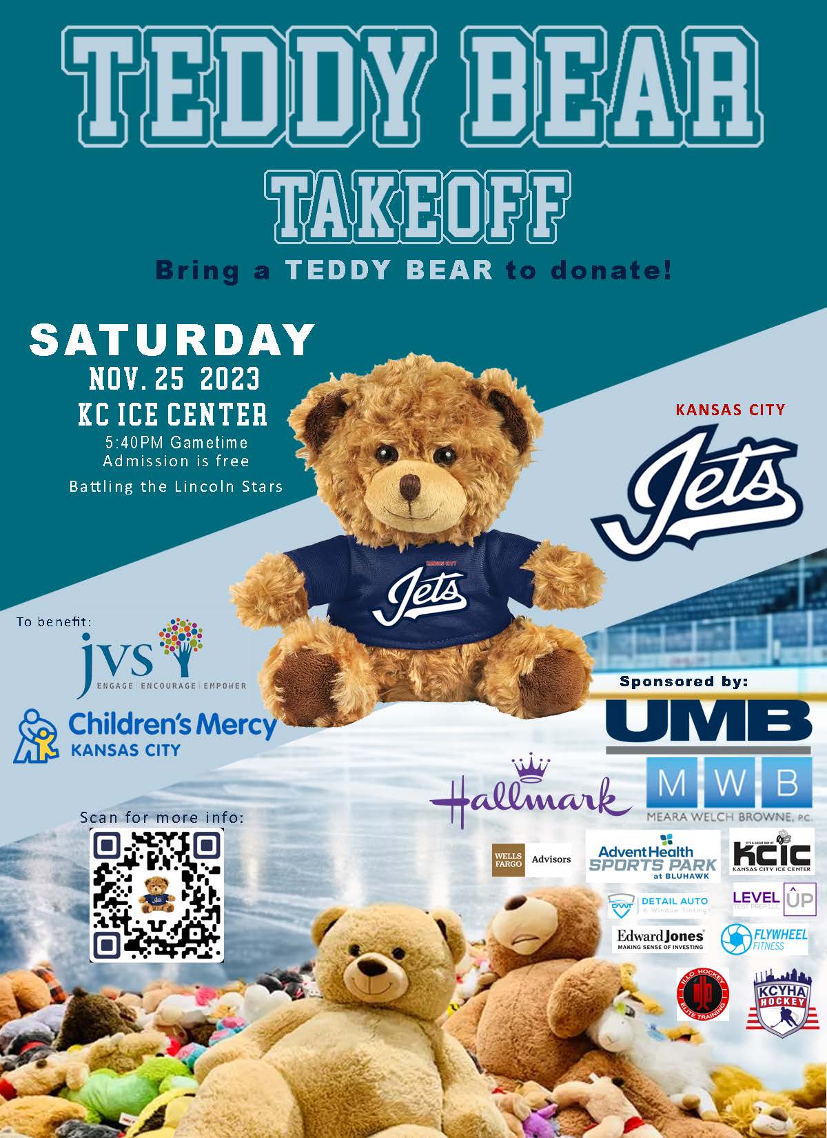 We're thrilled to announce an upcoming charity event hosted by the Kansas City Jets that combines exciting hockey action with a meaningful charitable cause where we will be giving back to children in need in our community —The Teddy Bear Takeoff.