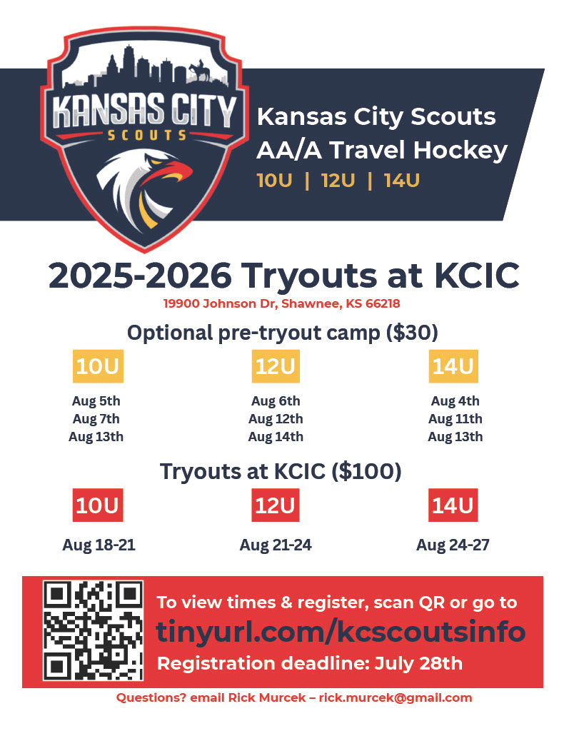 The 2025-2026 fall/winter hockey season is getting close and KC Scouts travel team tryouts are right around the corner.