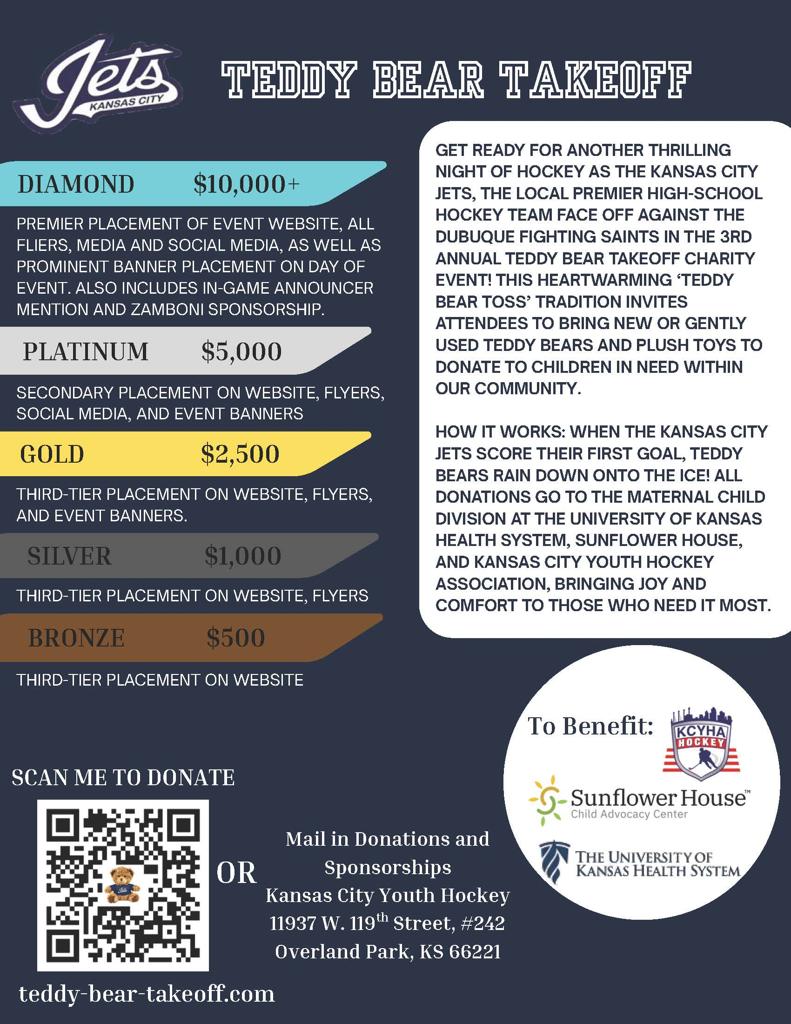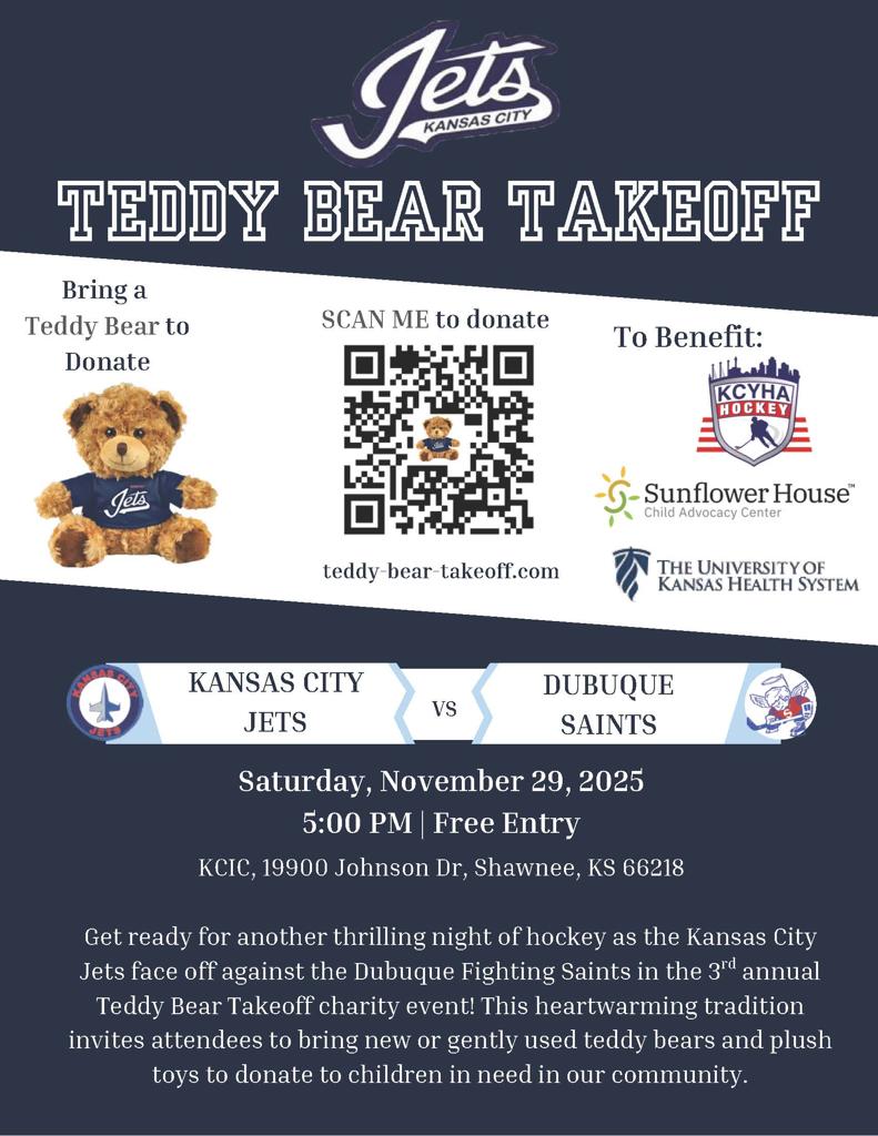 After the Jets score their first goal, fans will launch teddy bears onto the ice! Every stuffed animal and monetary donation benefits: